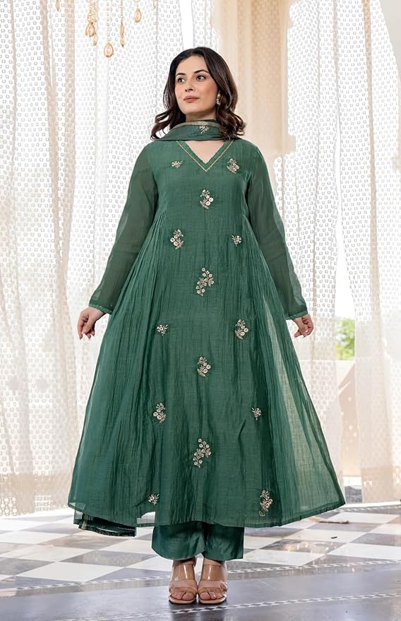 - Complete Outfit: This ethnic wear set includes a stylish kurta, matching pant, and dupatta – a ready-to-wear suit set for women.